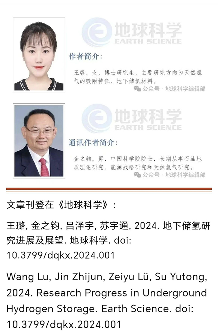 洞见 | 金之钧院士团队 地下储氢研究进展及展望